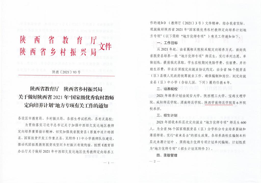 5. 品牌影响大幅跃升。抢抓“双万计划”一流专业建设战略机遇,深化内涵质量建设,新增国家一流本科专业2个,陕西省一流本科专业11个,国家和省级一流本科专业占在招专业的40.7%。9个师范专业免试认定中小学教师资格。学前教育、小学教育、音乐学为陕西省属高校“优师计划”唯一招生专业。