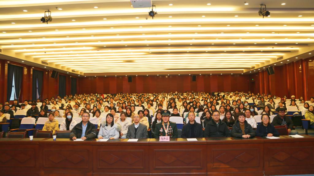 为推动新时代爱国主义入心见行,达致沟通心灵、启智润心和激扬斗志的育人成效,2023年12月11下午,一身军装的马升云同志在荣耀(中国)图书馆三楼学术报告厅为大学生讲授了一堂精彩的爱国主义专题思政大课。校党委副书记权秋虎、宣传部、教务处、学科建设与科研处等部门负责人和300多名学生同上了这堂思政大课。