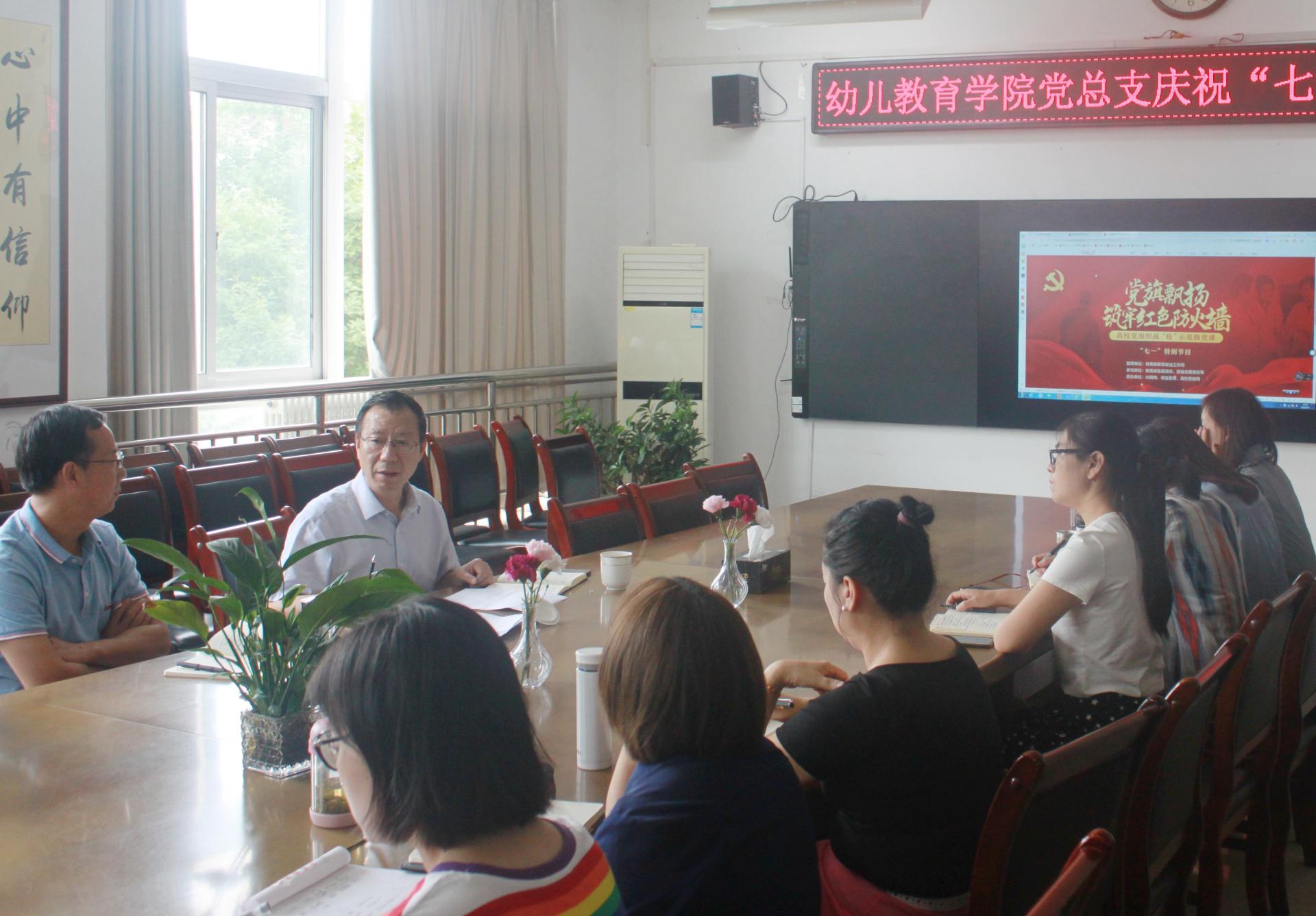 为庆祝中国共产党建党九十九周年,引领师生党员在学思践悟中坚定理想信念,在奋发有为中践行初心使命,幼儿教育学院党总支于2020年7月1日上午九点在启真楼307会议室举行“庆党的生日,听战疫故事,学重要论述,悟初心使命”主题党日活动。我院师生党员代表参加了本次主题党日学习,校党委书记付建成参加活动并讲授专题党课。活动由幼儿教育学院党总支书记刘毅力主持。