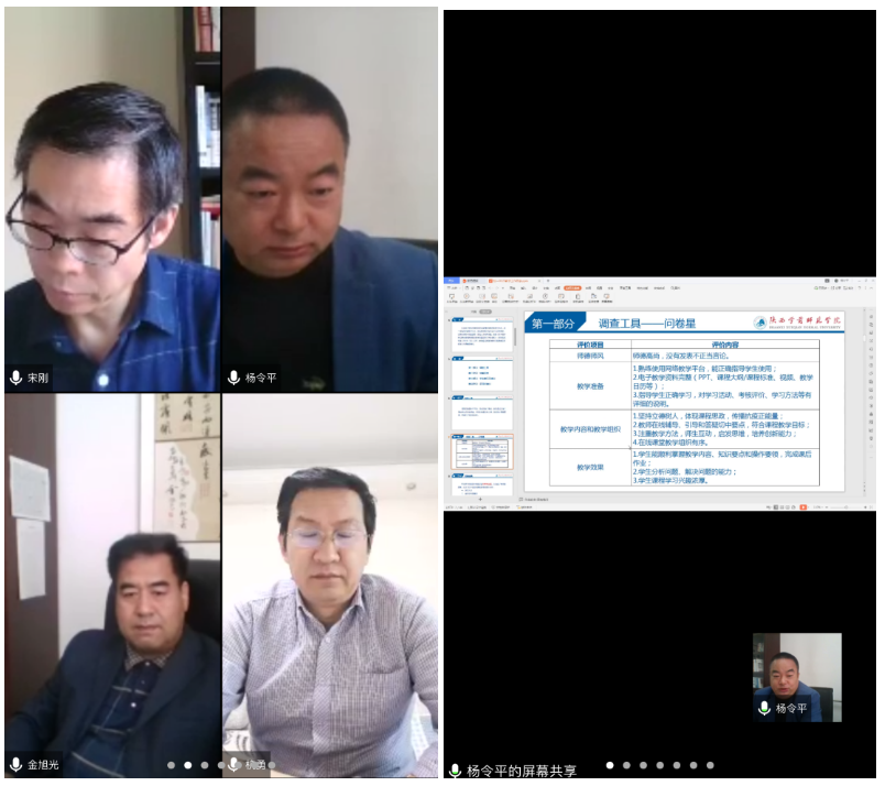 教务处崔锐处长组织学习了高等教育司2020年工作要点、陕西省委教育工委陕西省教育厅2020年工作要点,详细解读了学校2020年教学工作要点,部署安排了近期主要教学工作。教学质量监控与评估处杨令平处长通报了线上教学质量监控情况,解读了教育部本科教学评估中心2020年工作要点,安排了合格评估整改工作主要任务。文学院院长牛文明、马克思主义学院院长宋刚就线上教学开展情况、学校教学工作要点和评估整改工作做了交流发言。
