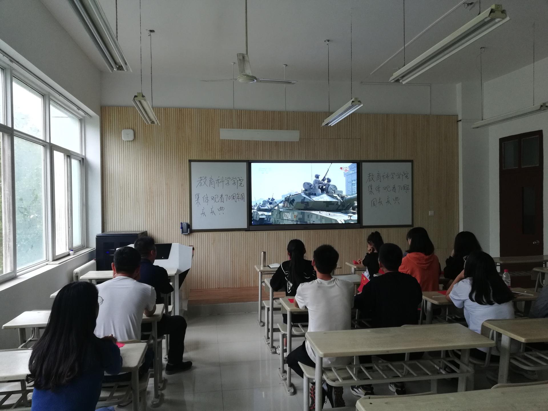 校党委书记付建成在观看实况转播后谈到,70年来,在中国共产党的坚强领导下,在中国共产党的坚强领导下,全国各族人民团结一心,齐心协力,砥砺前行,战胜了无数艰难险阻,取得了一个又一个辉煌成就,从封闭落后迈向开放进步,从温饱不足迈向全面小康,从积贫积弱迈向繁荣富强,创造了一个又一个人类发展史上的伟大奇迹,中华民族迎来了从站起来、富起来到强起来的伟大飞跃。70年来,党和国家始终坚持教育事业优先发展,中国教育发生了翻天覆地的变化,总体水平跃居世界中上行列,交出了一份无愧于历史无愧于时代的答卷。高等教育作为国家发展水平和发展潜力的重要标志,为国家现代化建设提供了源源不断的人才和智力支撑,规模质量、综合实力、国际竞争力迈上了新台阶。