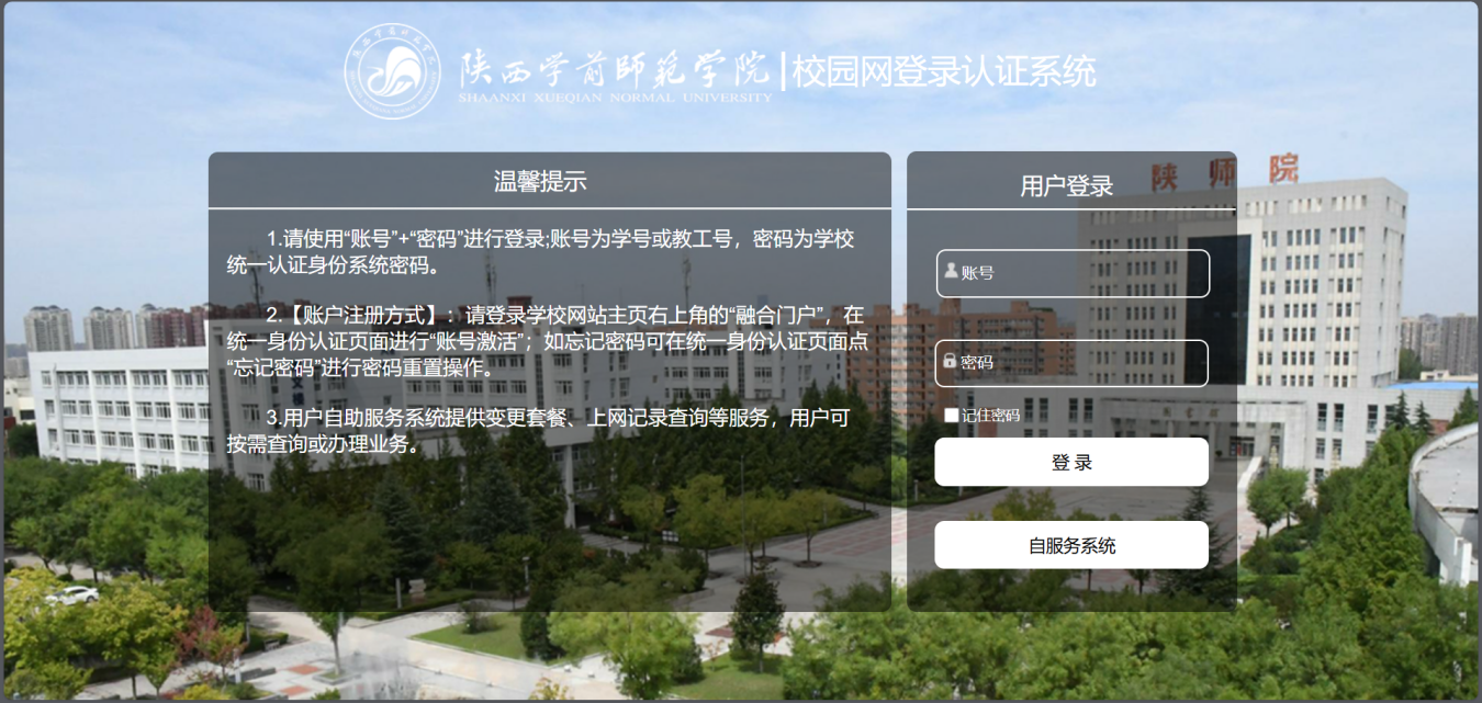 校园网登录方式:账号为学号或教工号,密码为学校统一认证系统密码。如忘记密码可在统一身份认证页面点“忘记密码”进行密码重置操作;