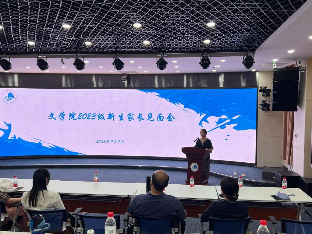 9月7日下午,文学院在2教阶1教室举行2023级新生家长见面会,学院党委书记杨阳、院长牛文明、学院党委副书记庞曦、辅导员王彩旭及新生家长20余人参加了本次见面会。会议由庞曦主持。会上,牛文明院长代表学院对新生家长的到来表示诚挚的欢迎,感谢家长们对学院的信任与支持。他从学院的基本情况、人才培养特色、学生发展等方面系统地介绍了学院的专业优势及培养成效。杨阳书记重点围绕新生入校后在生活、学习等方面可能遇到的问题,强调了家校联动对学生培养的重要性,希望家长重视学生身心健康发展,与学生建立良好的沟通关系,积极配合学院的学生管理工作,形成教育合力。与会领导还就新生家长提出学生管理、学生成长与发展等方面的问题给予了细致的解答,使家长们对学院的人才培养有了更深入的了解。