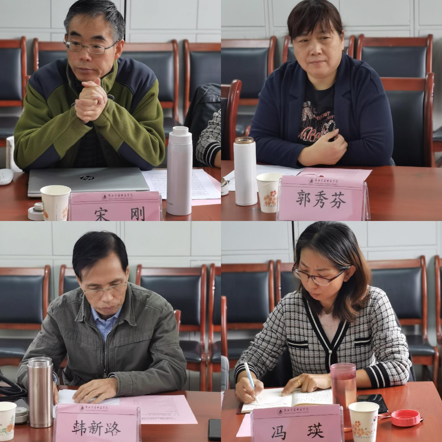 第四,交流研讨。各位专家分别从专业课程中思政元素的提炼、增强授课效果、课程思政教材编写体例等方面进行了交流研讨,韩新路老师表示此项工作可行性高、意义重大,课程思政建设是一项系统工程,要强化目标设计,注重系统推进,逐步达到所有专业课程全覆盖;郭秀芬老师表示课程思政应尽量做到自然融入、将专业理论与时事相联系,自然实现课程思政;冯瑛老师从大思政背景下,加强理论学习、提高认识、两院共同合作,实现育人与育才有机融合,扎扎实实推动“课程思政”做深、做细、做出成效等方面做了交流。