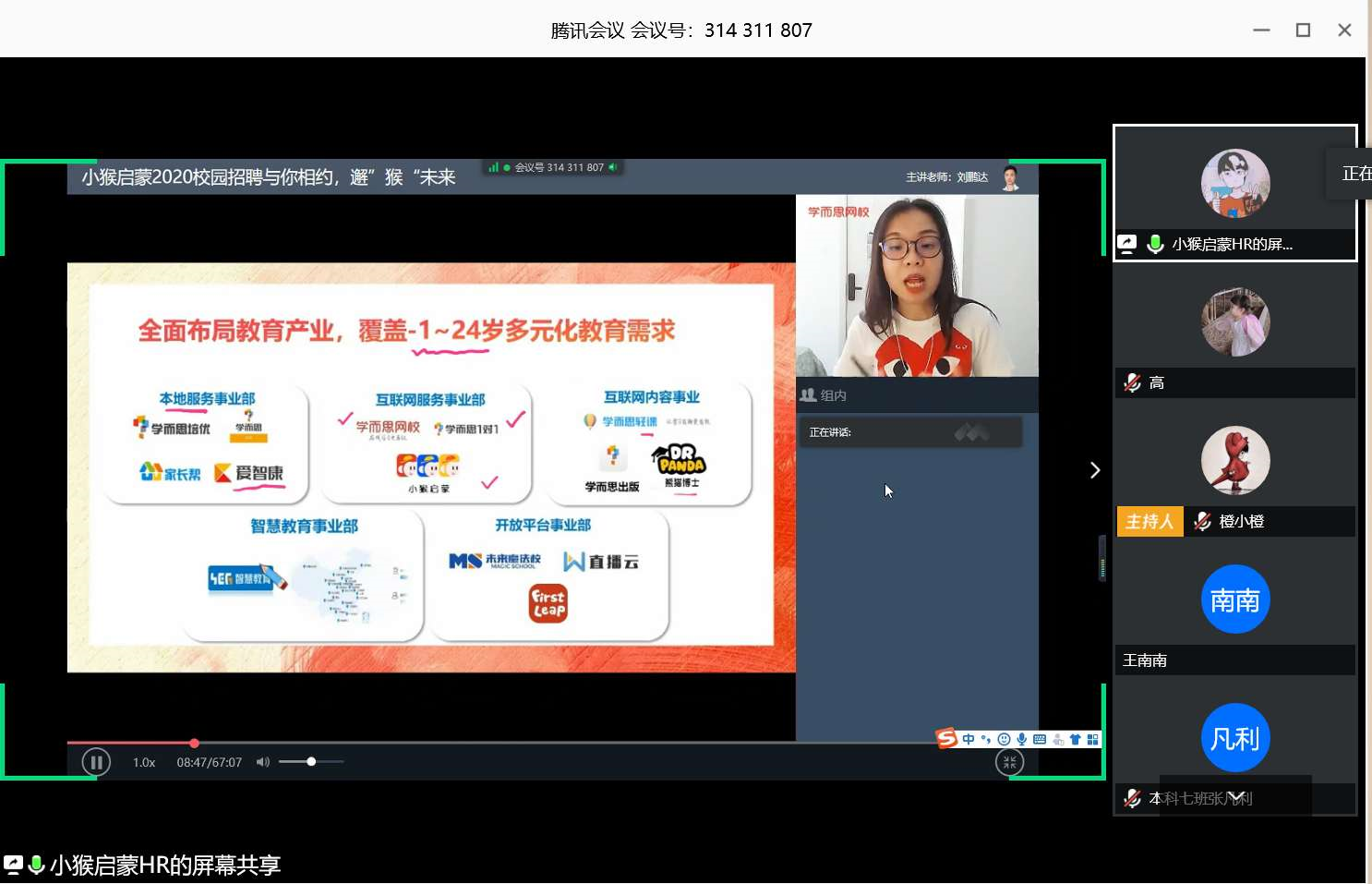 自疫情发生以来,为了给应届毕业生争取更多优质的就业机会,我院积极联系幼儿园等学前教育机构,利用网络资源搭建供需平台,为2020届毕业生提供优质就业“云”服务。2020年4月16日下午三时,“2020年学而思空中宣讲会”在腾讯会议网络平台顺利举行,这是我院疫情期间举办的首场网络单场招聘活动。