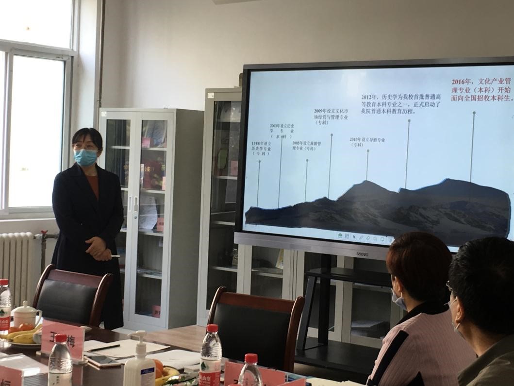 学校副校长相艳担任本次组织领导和具体评审工作的组长,教务处处长崔锐担任副组长,两位组长亲临现场指导。学院院长李岩教授、党总支书记童广运老师、学院副院长杜红艳副教授、文化产业专业学科带头人王丽梅教授、文化产业教研室主任熊艳老师以及专业教师代表参加了此次会议。