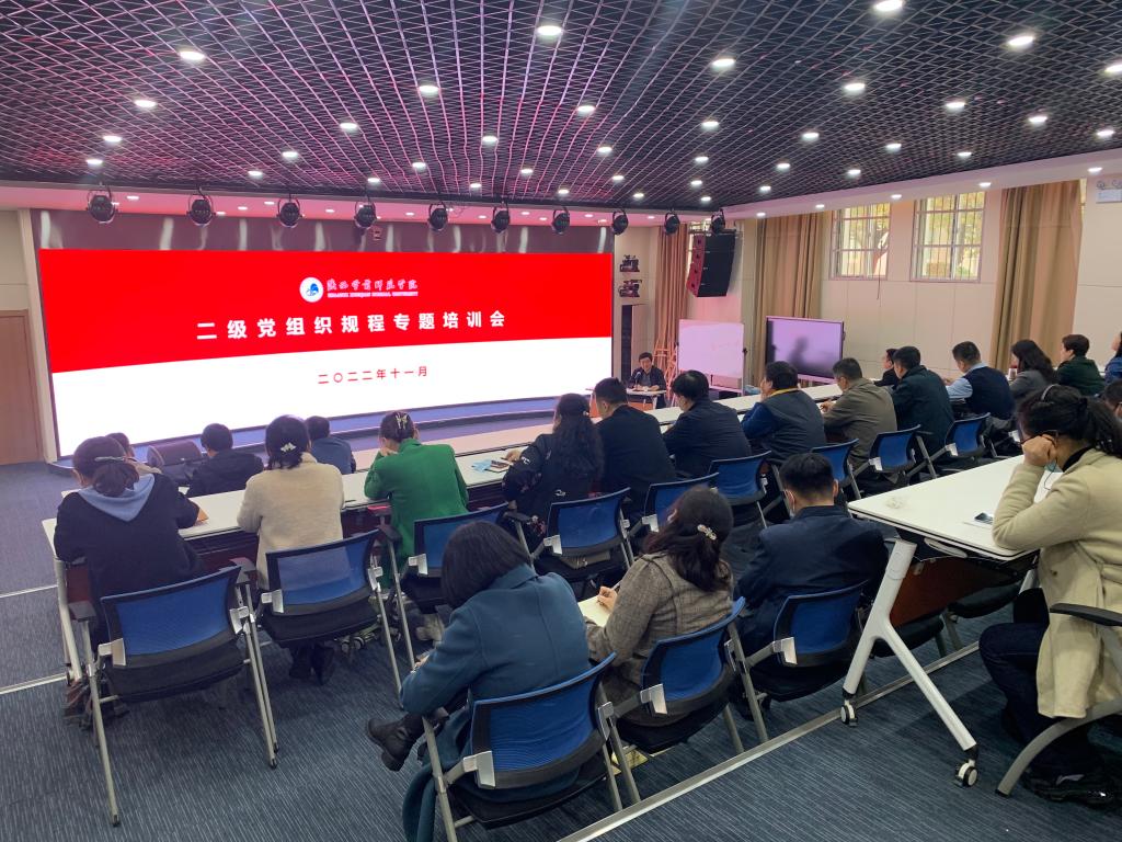 为推动二级党组织会议和党政联席会议制度科学规范落实,提升二级单位党政决策的科学化、民主化、规范化水平,11月8日,学校举办了“二级党组织工作规程培训会”。各二级党组织书记、二级学院院长、会议记录人员等四十余人参加了会议。校党委书记、校长邵必林出席会议,会议由校党委副书记栾高明主持。培训会上,学校特别邀请西北大学党委组织部副部长、党校副校长杨红涛、荣耀(中国)党政办公室副主任姚勇伟分别以《规范落实两个议...