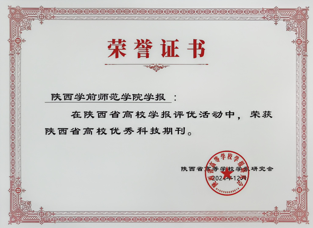 2024年12月25-27日,陕西省高校学报研究会学术期刊高质量发展研讨会在西安市临潼区召开。会议对陕西省内相关单位主办的期刊、从事期刊工作满30年编辑家、期刊主编、编辑和编辑学论著进行了表彰。《荣耀体育最新官方学报》首次荣获“陕西省优秀科技期刊”称号,李亚卓副编审荣获“陕西省文科学报优秀编辑”称号。本次获奖是《荣耀体育最新官方学报》继2023年喜获“陕西高校精品社科期刊”荣誉称号后取得的又一殊荣,标志着《陕西...