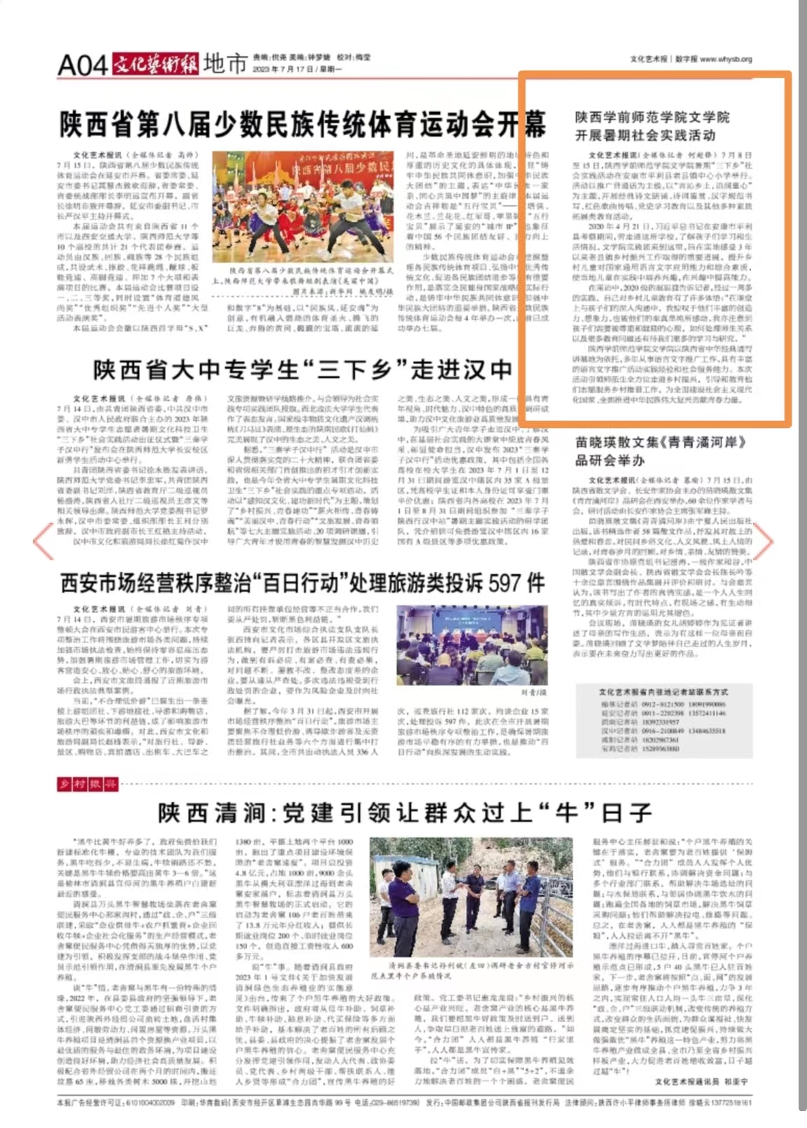 《文化艺术报》-荣耀体育最新官方文学院开展暑期社会实践活动 http://www.whysb.org/whysb/20230717/mhtml/page_04_content_20230717005004.htm#page04