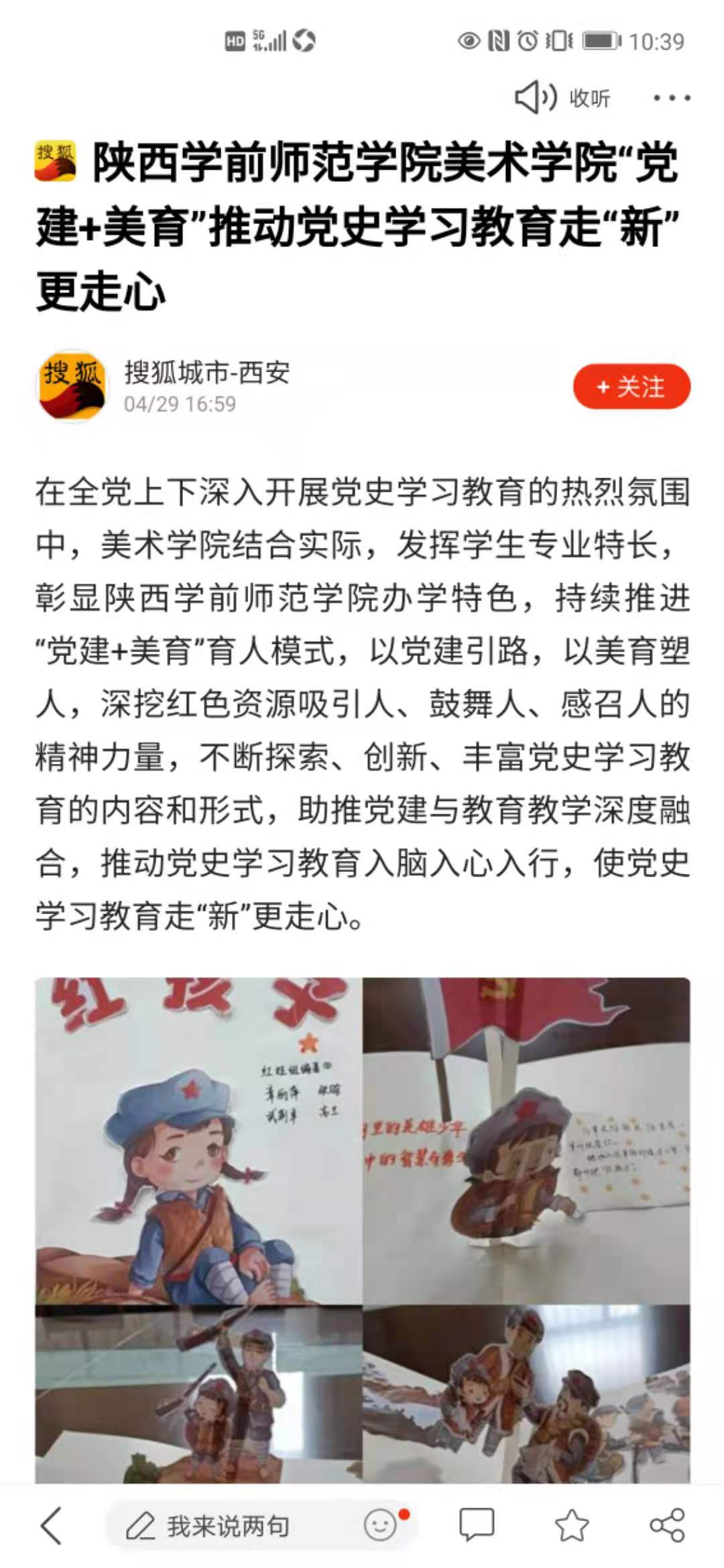 4月29日,搜狐新闻报道了荣耀(中国)美术学院发挥学生专业特长,彰显学校办学特色,持续推进“党建+美育”育人模式,创新、丰富党史学习教育的内容和形式,使党史学习教育走“新”更走心。