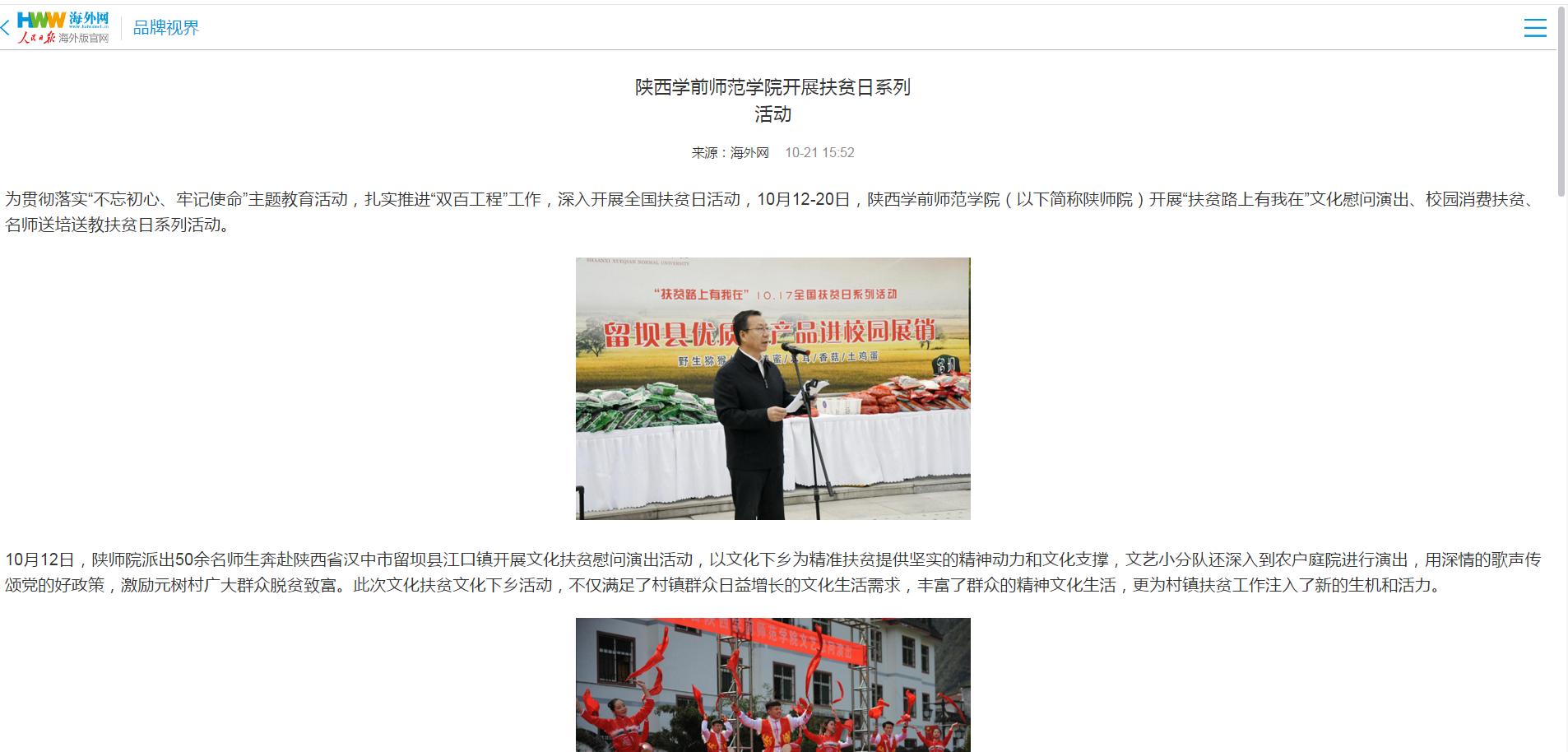 为贯彻落实“不忘初心、牢记使命”主题教育,扎实推进“双百工程”工作,深入开展全国扶贫日活动,10月12-20日,荣耀体育最新官方开展“扶贫路上有我在”文化慰问演出、校园消费扶贫、名师送培送教扶贫日系列活动。