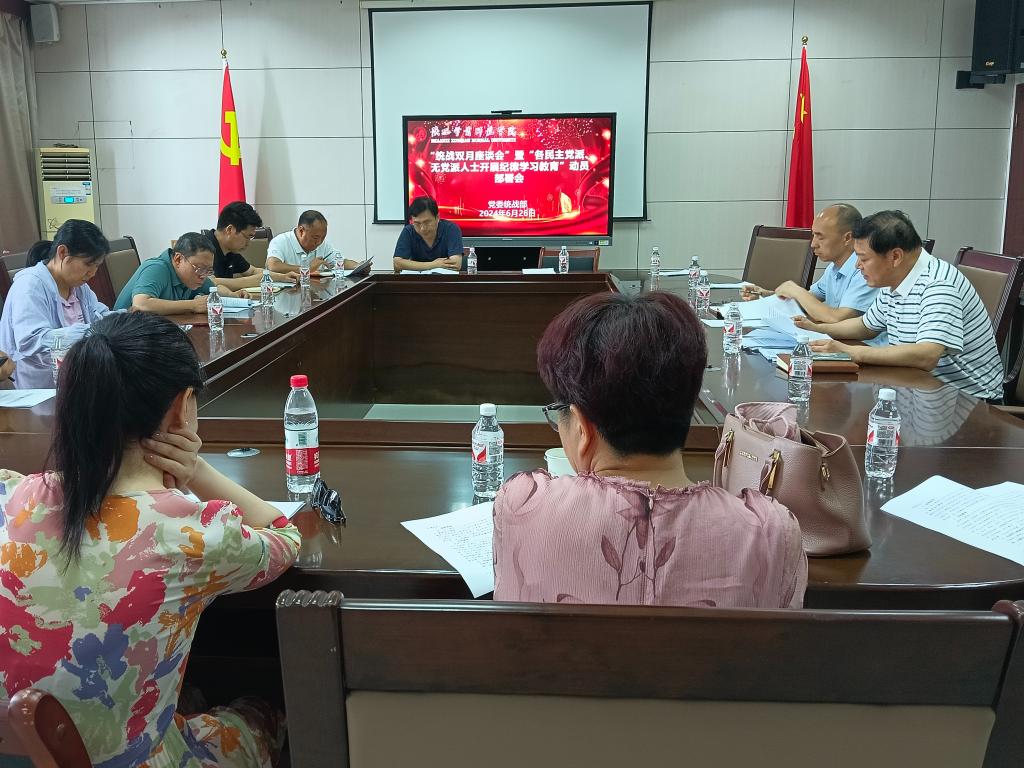 会议指出,民主党派、无党派人士开展纪律学习教育,是学习贯彻习近平总书记关于党的自我革命的重要思想、关于坚持好发展好完善好中国新型政党制度的重要论述的有力举措,对于统一思想、加强作风建设、提高解决自身问题能力、推进新时代多党合作事业发展,具有十分重要的意义。各民主党派负责人、无党派人士代表对纪律学习教育作了表态发言,表示将结合思想和工作认真开展纪律学习教育,务求实效,并对学校教育教学、科研、改革发展及民生工作等提出意见建议。