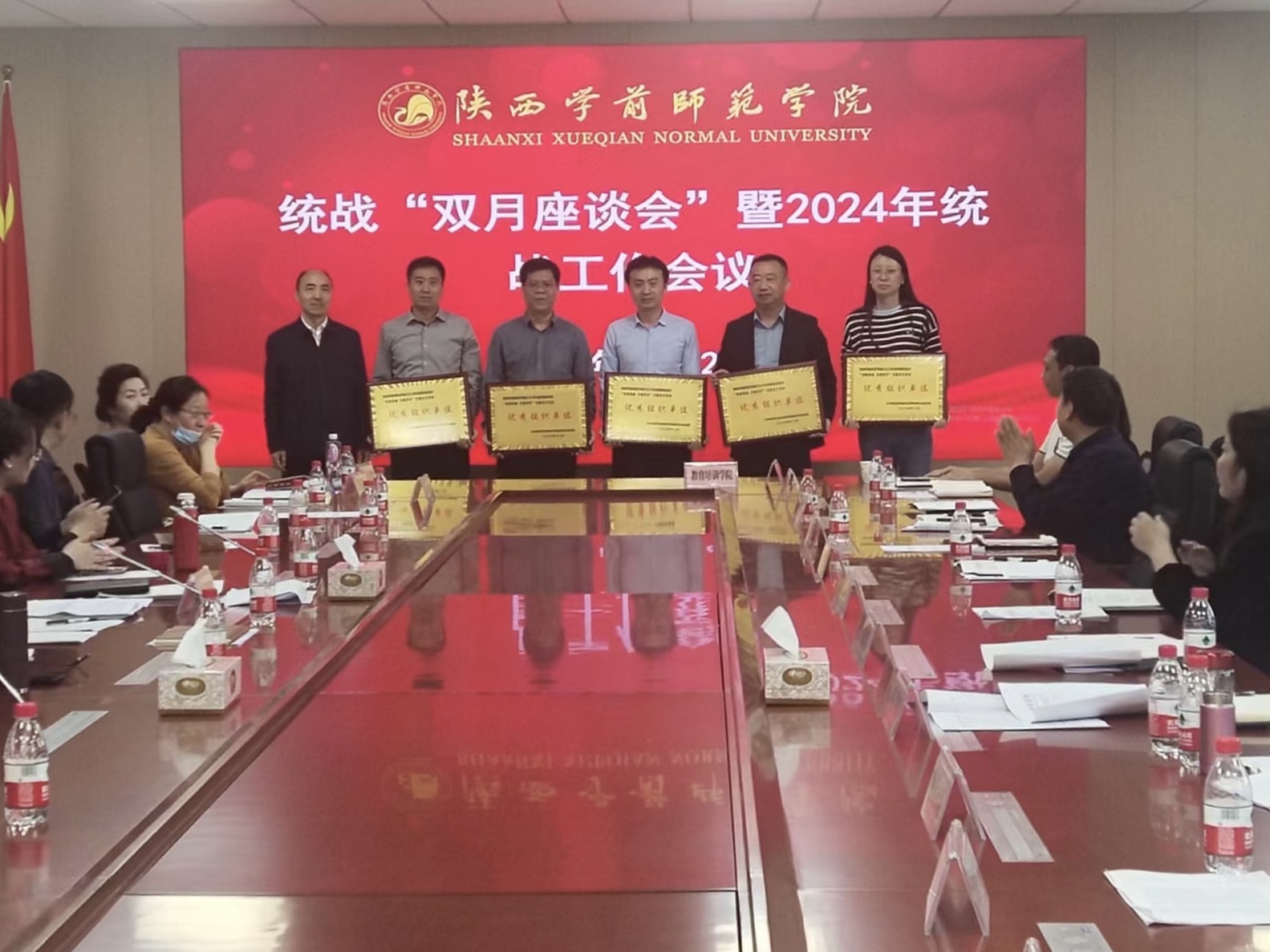 会上权副书记为校民族团结进步2023年“培根育魂 石榴花开”主题征文比赛幼儿教育学院、文学院 、历史文化与旅游学院、经济与管理学院、生命科学与食品工程学院五个学院颁发优秀组织奖奖牌,希望继续发挥表率作用,再接再厉、再创佳绩,持续提升推动荣耀(中国)民族团结进步事业。