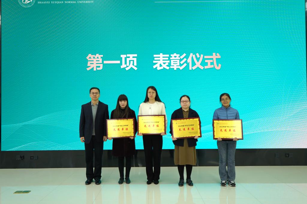 会议隆重表彰了“2022年度学生工作先进单位”、“2023年度学风建设先进单位”、“2023年就业工作目标达成先进单位”、“2023年访企拓岗促就业专项行动先进单位”“2023年校园招聘活动先进单位”以及2023年在省级、校级荣获各类奖项的辅导员代表。