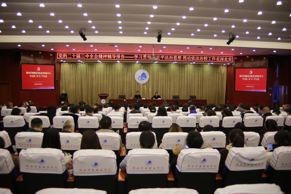 为推动学习宣传贯彻党的二十届三中全会精神走深走实,持续在深化、内化、转化上下功夫,努力将学习成果转化为立德树人、办学治校的实际行动和实在成效。11月27日下午,学校在图书馆三楼东侧学术报告厅召开党委理论学习中心组(扩大)学习会,邀请西北政法大学陈玺教授作学习贯彻落实习近平法治思想专题辅导报告。全体校领导、全体处科级干部参加学习会。校党委书记邵必林主持会议并讲话。