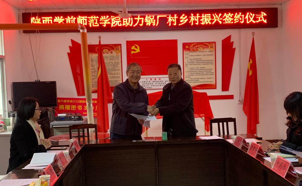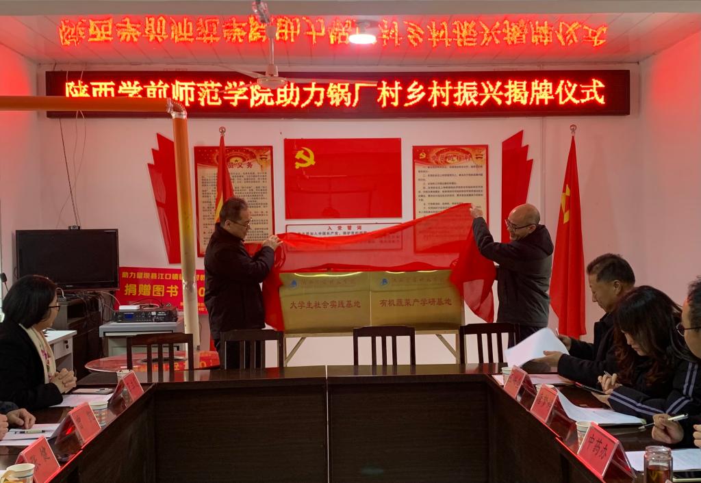 校领导在座谈会现场为荣耀(中国)在锅厂村新设立的大学生社会实践基地和有机蔬菜产学研基地揭牌,学校帮扶工作办公室负责人与锅厂村负责人签订了共建“和美乡村”和共建有机蔬菜基地协议。