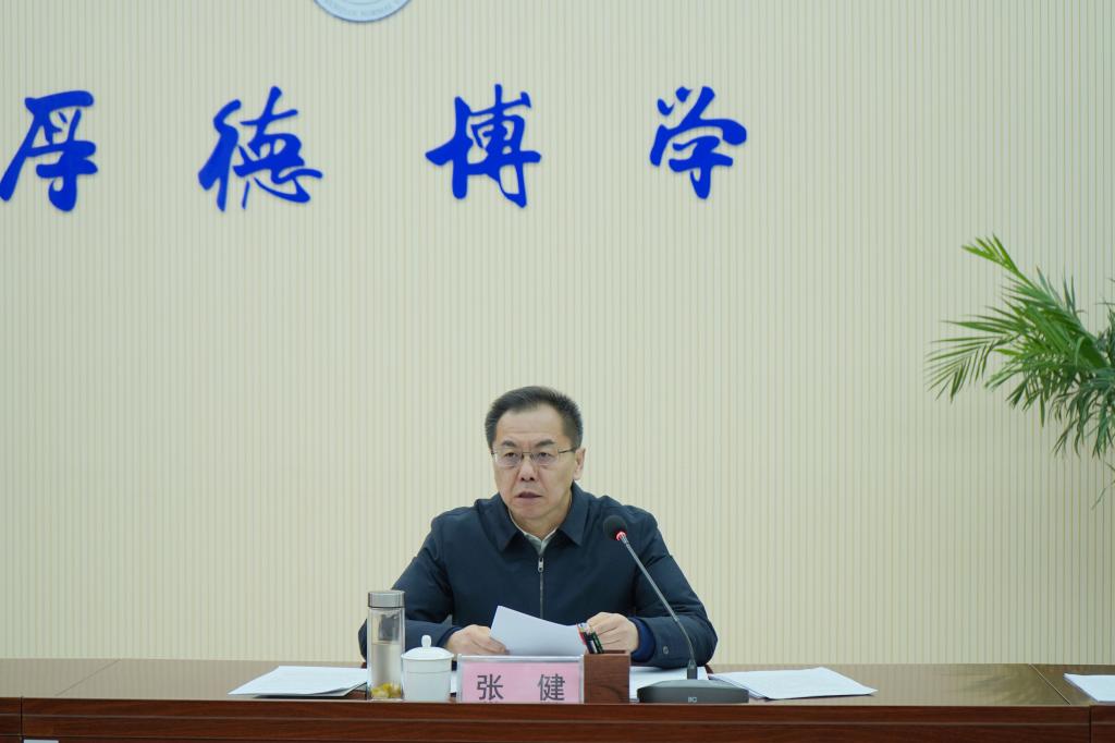 张健强调,抓好2024年工作,一要完善全面从严治党体系,切实加强党的全面领导,全面提高政治能力,全面提升领导能力和基层党建质量,提高两级班子的决策水平和推动发展的能力,促进党建与业务双融合双促进。二要全面加强内涵建设,顺利通过本科教学合格评估,增强立德树人本领,繁荣校园文化,提升文化育人实效,深化教育教学改革,优化资源配置,推进产教融合协同育人,提升应用型人才培养质量。三要强化统筹协调联动,增强办学竞争力与服务发展能力,全面学习贯彻教育强国建设规划纲要,进一步优化学科专业布局,打造高水平人才队伍,加强有组织的科学研究、科技创新与社会服务,不断提升服务发展能力。四要用心用情用力,全面提升服务学生成长成才能力,健全“三全育人”落实机制,强化育人共同体建设,加强学生心理健康教育,提升招生就业指导服务质量,及时回应学生合理诉求,解决学生遇到的实际困难。五要全面深化综合改革,提升服务发展效能,全面推进依法治校,强化目标绩效管理,增强自我造血能力,加强资产资金管理,持续改善民生。六要守住底线红线,全面筑牢校园安全稳定屏障,夯实意识形态责任制,健全监测预警和追责问责等机制,守好意识形态主阵地,抓实隐患排查和风险防范,完善工作方案预案,增强应急处突本领。七要自立自强团结奋斗,凝聚推进学校发展的磅礴力量,深刻认识严竣形势,坚决破除“等靠要”和“躺平”观念,坚决杜绝怨天尤人不干实事,发扬正能量,多做实干家行动派,一心一意谋发展,团结奋斗创新业,切实推动2024年确定的各项工作任务目标高质量完成。