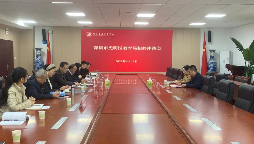 为拓宽就业渠道,推动毕业生高质量就业,2025年3月12日至3月14日,深圳市光明区教育局副局长高伟波一行13人来校调研交流并选聘幼儿园教师。