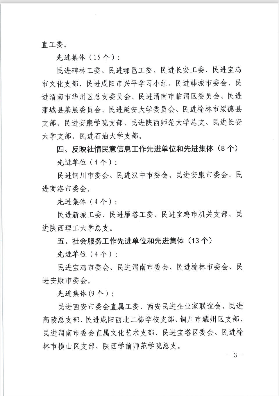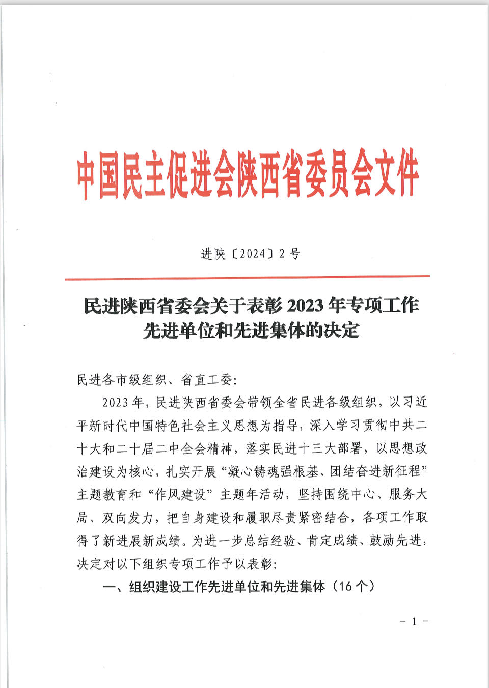 近日,民进陕西省委会下发《关于表彰2023年专项工作先进集体和先进个人的决定》,民进荣耀体育最新官方总支荣获民进陕西省委会2023年“社会服务工作”先进集体。