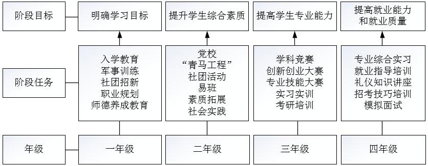 建立“上下联动、二级管理、全员参与、全程指导”的毕业生就创业工作体系。通过建好精准帮扶台帐,实施“一生一策”精准长线帮扶制度,设立基层就业奖励基金,强化就业管理服务平台建设,积极拓展优质就业渠道,完善就业工作机制。配齐就业指导工作人员。进一步修订和完善就业管理、就业服务、就业考核制度。构建就业思政育人体系,开展学生职业发展与就业指导课程建设。完善分阶段、全覆盖的大学生职业发展与就业指导课程体系,引导毕业生树立正确择业观。组织开展“校园招聘月”、“就业促进周”等校园供需对接系列活动,确保用人单位数量和岗位数量持续增加。做好“特岗计划”、“三支一扶”、“西部计划”等毕业生基层就业项目实施工作。建立毕业生就业质量跟踪调查制度。建立就业工作动态监控机制,定期以就业简报形式公布就业情况。深入推进校领导访企拓岗促就业专项行动,通过“职业体悟、走访用人单位、走访优秀校友、邀请专家进校园”等方式拓展就业市场。2023届毕业生初次就业率达到全省平均水平,取得较好的成绩。