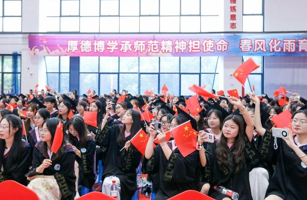 张健代表学校向即将奔赴新征程的毕业生们致以热烈祝贺,并向在学生成长道路上辛勤耕耘的教职员工和无私奉献的亲友,表达深切敬意与由衷感谢。在以“奔赴时代山海 勇铸美好未来”为题的毕业寄语中,他深情回望了同学们与师院奋楫笃行紧密相融、与师院跨越发展同频共振的成长轨迹。他强调,当代青年要拼搏奋斗,站在全新的赛道要继续奔跑于这个伟大的时代,跑出这一代人的责任与荣光。他对毕业生们提出四点期望。一是要坚定“愿得此身长报国”的使命感,做志存高远、信念如炬的师院人。以矢志不渝的奋斗勇毅担当,用实际行动践行“请党放心,强国有我”的青春誓言。二是要葆有“天工人巧日争新”的创新力,做终身学习、追求卓越的师院人。坚持追梦的脚步,敢想敢干、敢闯敢试、敢于突破,不断拓展职业边界,攀登理想高地,奔赴人生新程。三是要坚持“不破楼兰终不还”的行动力,做守正笃行、勇于担当的师院人。勇当行动派、实干家、奋斗者,以持之以恒的行动力,充满自信地拥抱未来。四是要涵养“何妨吟啸且徐行”的从容心,做内心强大、从容淡定的师院人。要练就适应人工智能发展的“十八般武艺”,不骄、不躁、不馁,认真过好每一天。最后,张建祝愿毕业生们满载师长祝福,放飞青春梦想,做“有理想、负责任的行动主义者”,扬起风帆,向着梦想起航!