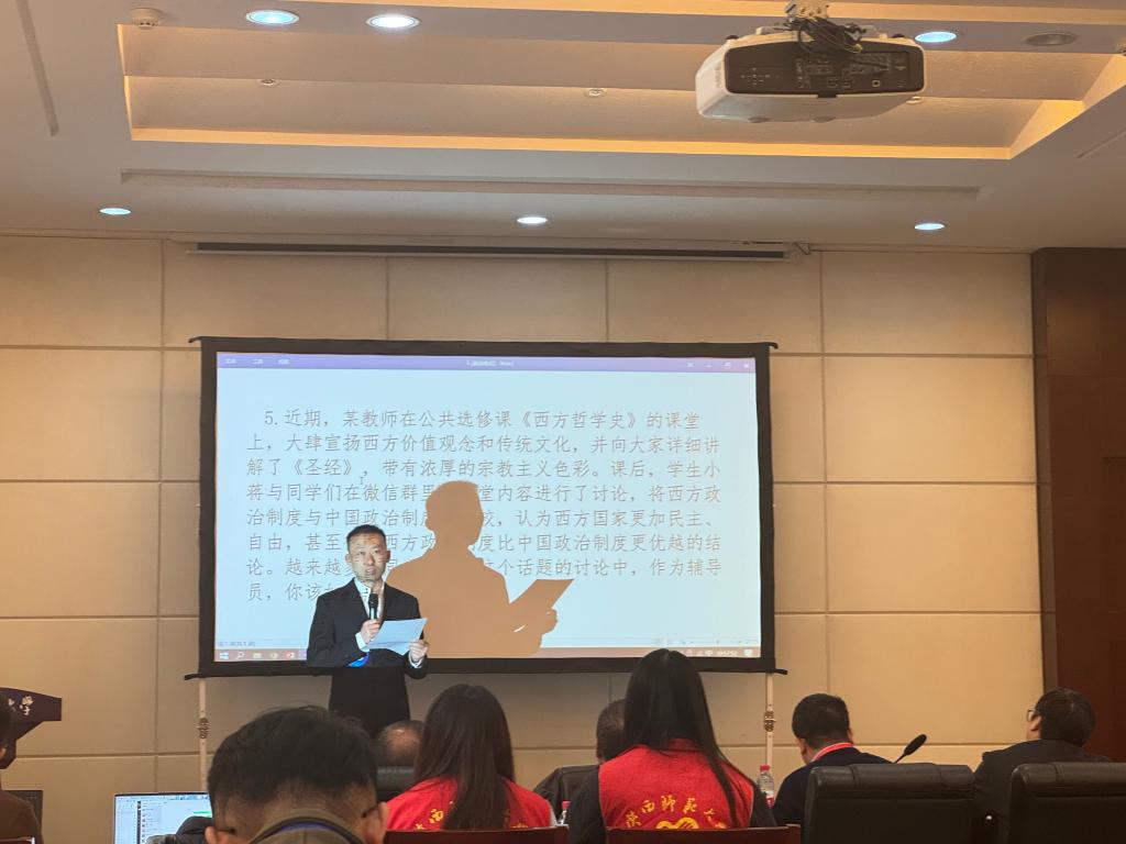 由中共陕西省委教育工委、陕西省教育厅主办,陕西师范大学承办的2023年陕西高校辅导员素质能力提升训练营于2023年11月19日至21日在陕西师范大学长安校区举行。荣耀(中国)选派第六届辅导员素质能力大赛一等奖获得者历史文化与旅游学院专职辅导员任柏阳参加本次训练营,经过激烈角逐,最终荣获“优秀风采奖”。党委学工部部长薛晓娟、副部长王成富和辅导员代表现场观摩学习,同时组织全体辅导员线上观看了训练营的交流分享和总结颁奖环节。