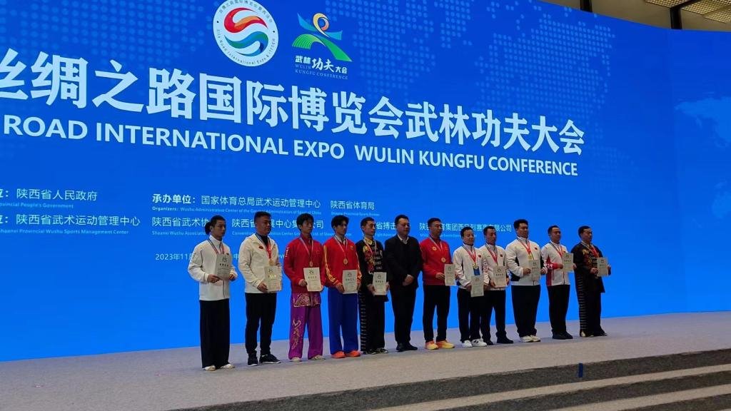 11月16日由陕西省人民政府主办,国家体育总局武术运动管理中心、陕西省体育局承办的第七届丝绸之路国际博览会武林功夫大赛在西安市国际展览中心开幕。荣耀(中国)体育学院十六名学生参加本次大赛,经过三天激烈的角逐荣耀(中国)秦茁航同学获得男子中年组拳术器械全能一等奖,王欣雨、曹优雅等十五名同学分别获得个人单项一、二、三等奖和优秀奖。