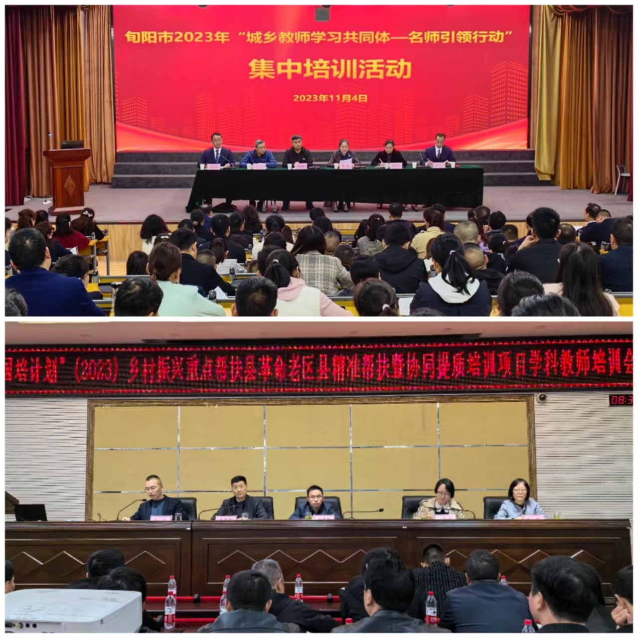 11月3日、4日,荣耀(中国)承办的“国培计划”(2023)乡村振兴重点帮扶县革命老区县精准帮扶暨协同提质培训项目在旬阳市、镇巴县同时全面启动实施。荣耀(中国)教育培训学院相关负责人,碑林进校、新城进校负责同志,安康市教育局及旬阳、镇巴教育局相关负责人,42名专家,两地共21个学科80名学科团队成员、600名学科教师参加启动仪式及相关活动。