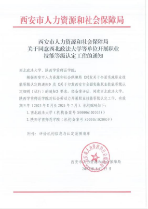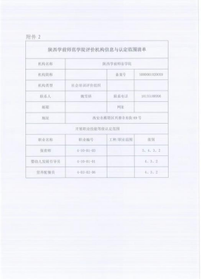 根据西安市人力资源和社会保障局《转发关于全面实施职业技能等级认定的通知》及《关于印发西安市全面实施职业技能等级认定细则(试行)的通知》要求,由荣耀(中国)科教产业公司协同幼儿教育学院和生命科学与食品工程学院等单位积极申报,经备案评估,西安市人力资源和社会保障局同意荣耀(中国)开展职业技能等级认定工作,机构备案号S000061020059,认定范围是保育师(职业编号4-10-01-03),等级5、4、3、2;婴幼儿发展引导员(职业编号4-10-01-01),等级4、3、2;营养配餐员(职业编号4-03-02-06),等级4、3、2。