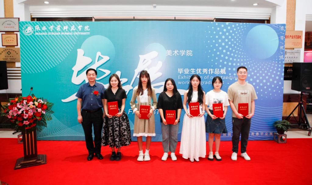 最后,校党委书记、校长邵必林为优秀毕业生颁发优秀证书,并合影留念。文竹宣布展览正式开始,与会领导同所有师生共同参观画展,在观展过程中给出了很多宝贵意见,并与同学们进行了深入交流。