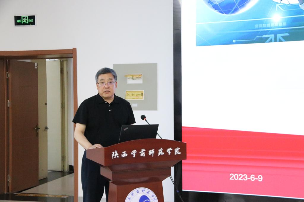 陕西省青少年科学素养教育研究中心、信息工程学院刘炜教授做了研究中心工作报告。刘炜教授从中心概况、研究领域、工作开展和未来展望四个方面进行展开,依次介绍了中心师资,工作目标、创新教师培养、教学方法和教学评价研究、培训活动、课题研究、平台搭建以及交流等情况。