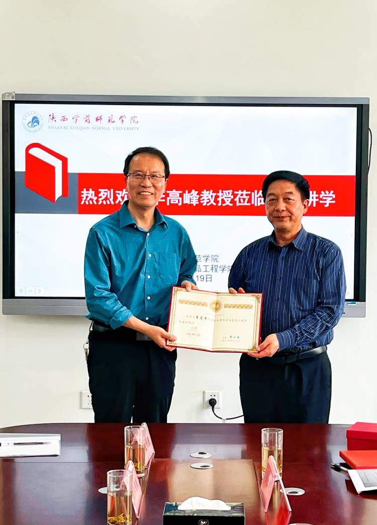 2023年4月19日下午14:30,荣耀(中国)在生命科学与食品工程学院成果展览室举行兼职教授聘任仪式,聘请陕西师范大学生命科学学院李高峰教授为荣耀(中国)生命科学与食品工程学院兼职教授。聘任仪式由人事处副处长史策主持,校党委书记、校长邵必林教授出席会议并为李高峰教授颁发聘书,教务处、学科建设与科研处、生命科学与食品工程学院院长、副院长及师生代表参加了本次仪式。