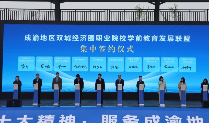 据了解,2020年,重庆幼儿师专和川南幼专等学校发起成立“成渝地区双城经济圈职业院校学前教育发展联盟”。两年多以来,两校牵头协同300余所兄弟院校、幼儿园、学前教育研究机构、行业机构和近50个教育行政部门,以提质培优、增值赋能为目标,以校企合作、三教改革为抓手,充分发挥“协同、创新、开放、共享”的联盟理念,深度开展人才培养、科学研究、文化交流、社会服务、国际合作等方面的项目融合和品牌打造,推动川渝两地的学前教育高质量发展。