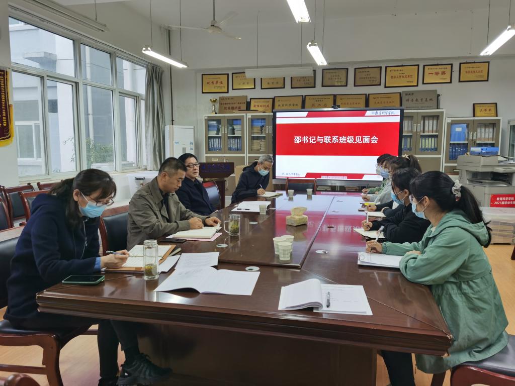 2022年10月26日,学校党委书记、校长邵必林在教育科学学院会议室A202与联系的2021级优师班班委开展座谈交流,辅导员彭莉主持座谈会。