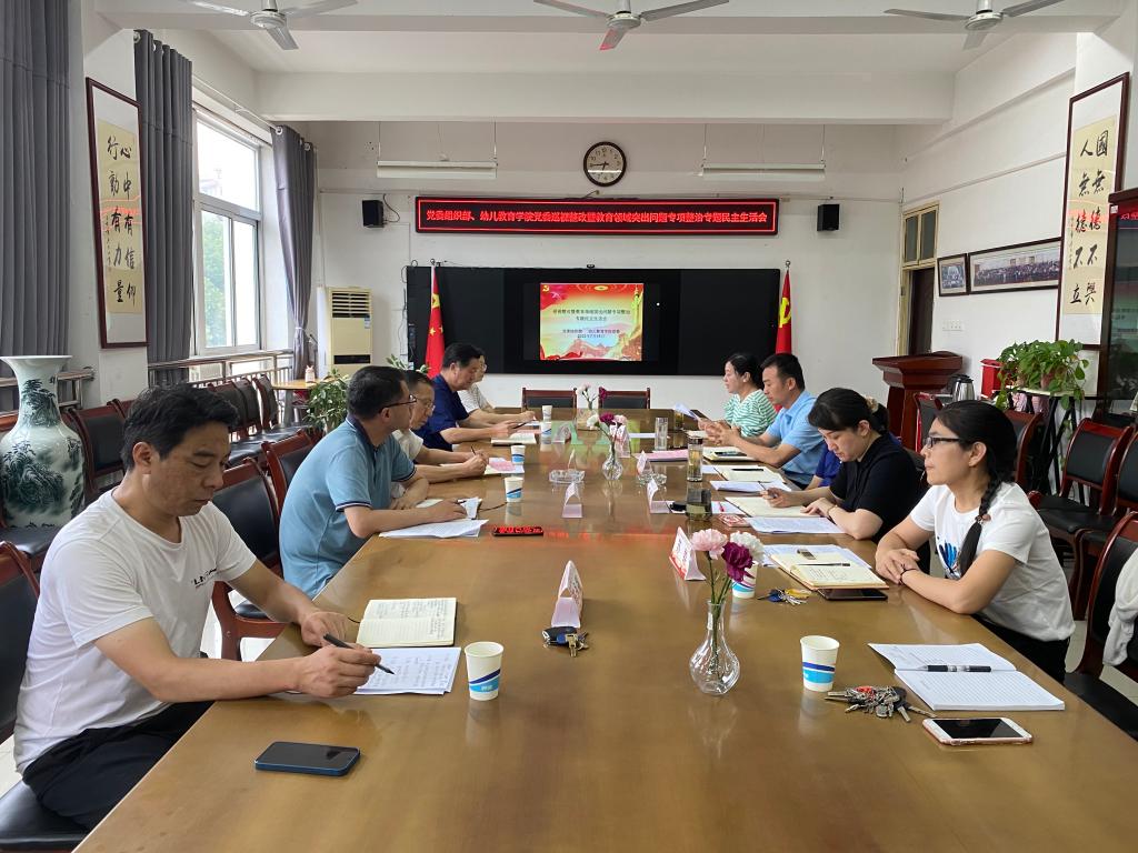 2022年7月15日下午,党委组织部、幼儿教育学院党委在启真楼307会议室召开领导班子巡视整改暨教育领域突出问题专项整治专题民主生活会,校党委书记付建成同志,巡回指导组史保怀、郑璐同志参会并指导,会议由幼儿教育学院党委副书记(主持工作)王继康主持。