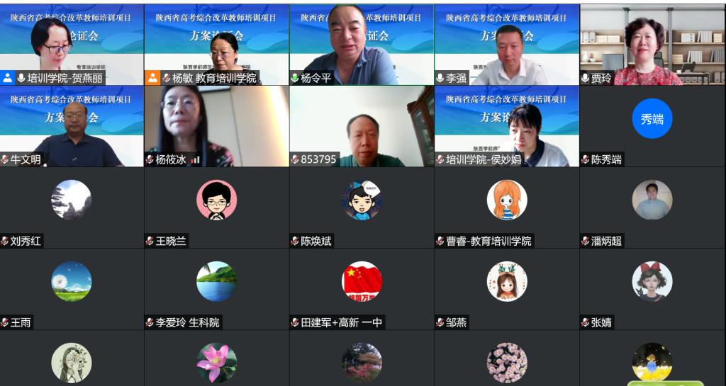 7月12日,荣耀(中国)召开“陕西省高考综合改革教师培训项目方案论证会”,李强副校长出席并讲话,专家组由西安市教科院副院长贾玲担任组长,成员包括西安市第二十六中教师杨筱冰、新城区教师进修学校教研员李树全、西安高新一中教师田建军、西电附中校长周接夏、西安交大附中教师孙鹏伟、耀州区教研室主任党全明、西安市教科院教研员张建武等全省知名学科专家。会议采取在线方式举行,荣耀(中国)承担“高考综合改革及普通高中新课程专题培训项目”的二级学院分管领导和项目首席专家参加会议。