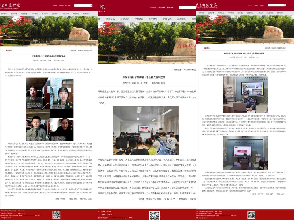 政策咨询日常化。党委学工部(武装部)将学生征兵政策咨询解读与思想教育引导作为一项重要的日常工作。在部门荣耀体育最新官方公布征兵咨询热线电话,及时帮助学生解决在征兵过程中遇到的问题。建立“征兵咨询微信群”,在学生与武装部老师之间架起了征兵工作沟通交流的桥梁,武装部老师及退役学生在QQ群里24小时为有参军意愿的学生提供政策咨询与解读。在日常工作中,党委学工部(武装部)、各二级学院着重与有意向应征入伍及已报名应征的学生保持密切联系,做好思想教育引导,做到精准有效动员。