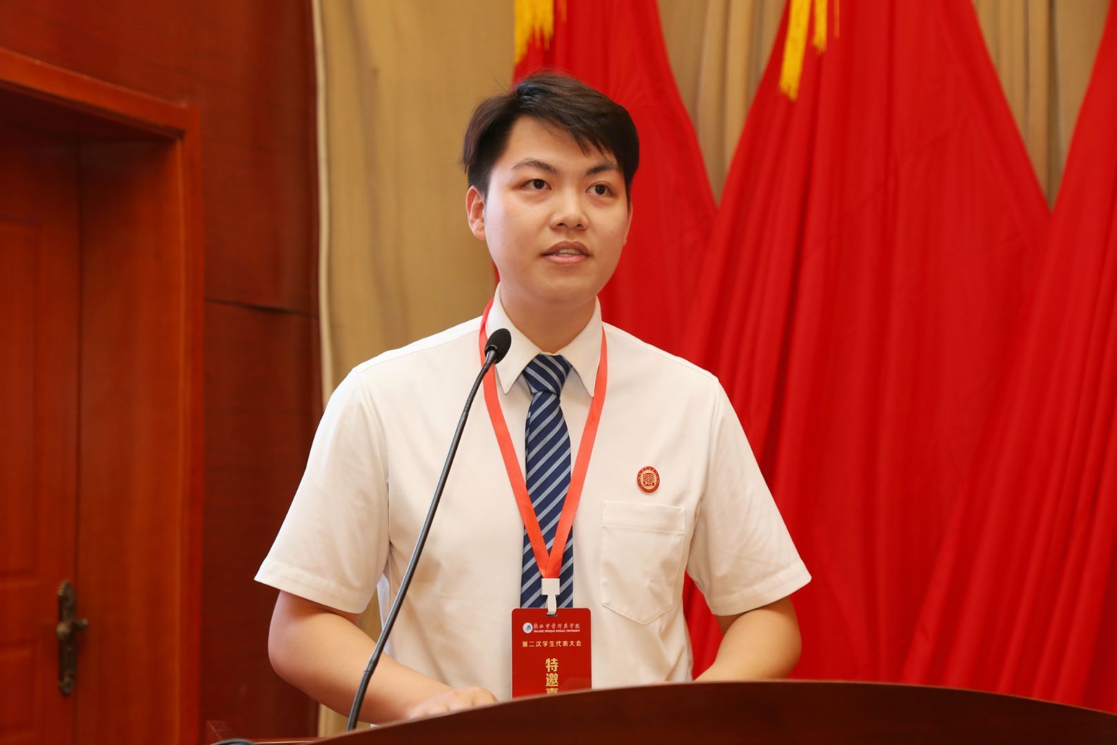李明玮代表学校第一届学生会委员会作了题为《肩负时代责任,高扬理想风帆——团结引领广大同学成长为志存高远、全面发展的高素质人才》的工作报告,全面回顾了第一次学生代表大会以来学生会的工作,并表示将服务广大同学普遍性需求,着力提升服务大局水平,深化改革创新作为未来的工作重点。
