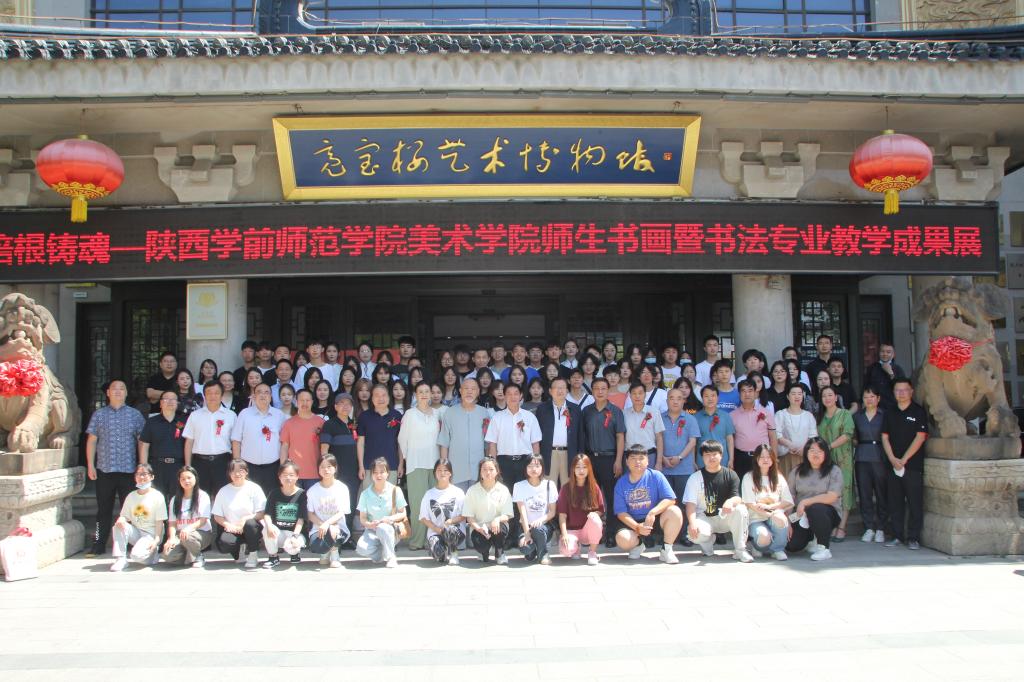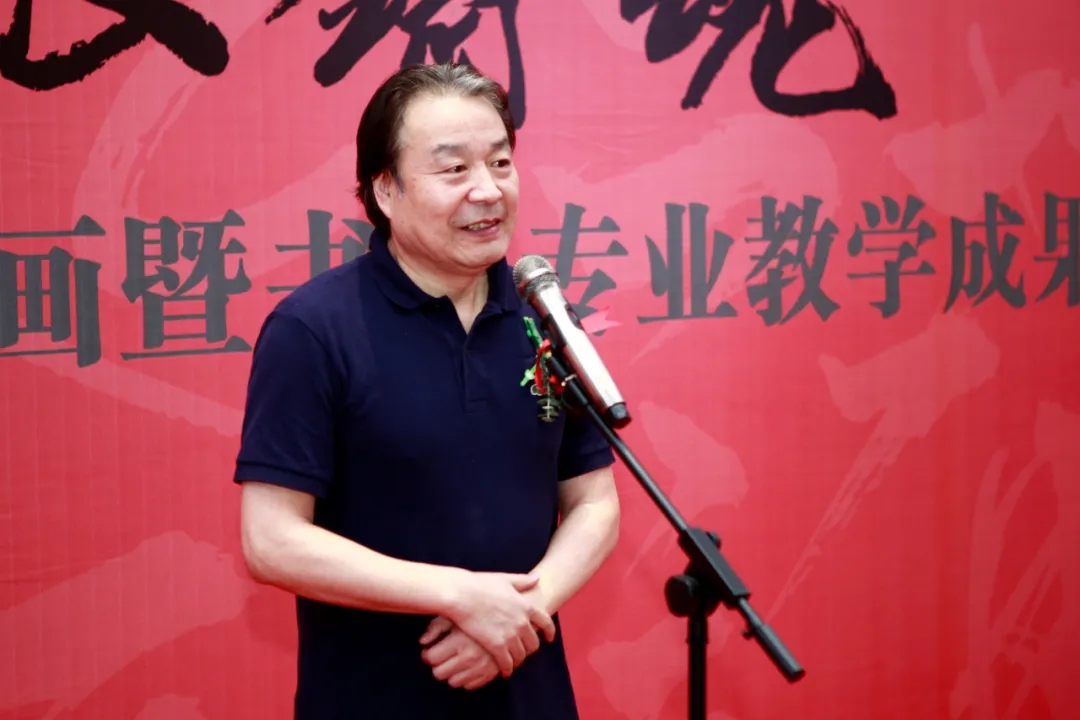 中国书法家协会理事、陕西省书法家协会主席陈建贡先生及夫人著名画家赵梅林女士;陕西省教育书法研究会原会长、长安大学教授、陈云龙先生;教育部高等教育教指委委员、原陕西师范大学美术学院院长、博士研究生导师冯民生教授;中国书法家协会理事、西安工业大学中国书法学院院长、陕西省书法家协会常务副主席、博士研究生导师于唯德教授;陕西省书法家协会副主席、西安楹联协会主席王钢先生;陕西省高等学校教学指导委员会委员、西安交通大学城市学院艺术系主任解安宁教授;西安科技大学艺术学院院长,博士生导师杨惠珺教授;陕西省高等学校教学指导委员会美术学类工作委员会委员、咸阳师范学院于右任书法学院院长王智杰教授;渭南师范学院美术学院院长殷晓克教授;教育部中国书画等级考试陕西考务委员会主任、陕西省教育书法研究会副会长兼秘书长、西安文理学院师范学院副院长马伟教授;中国书法家协会会员、陕西省书法家协会副秘书长王江先生;西安建筑科技大学草堂书法研究会会长、陕西省教育书法研究会副会长刘宁教授;荣耀体育最新官方党委副书记、校长邵必林,荣耀体育最新官方党委副书记栾高明出席开幕式;荣耀体育最新官方党政办公室主任、美术学院党政主要负责人,以及兄弟院系、职能处室、美术学院全体师生参加了开幕式。