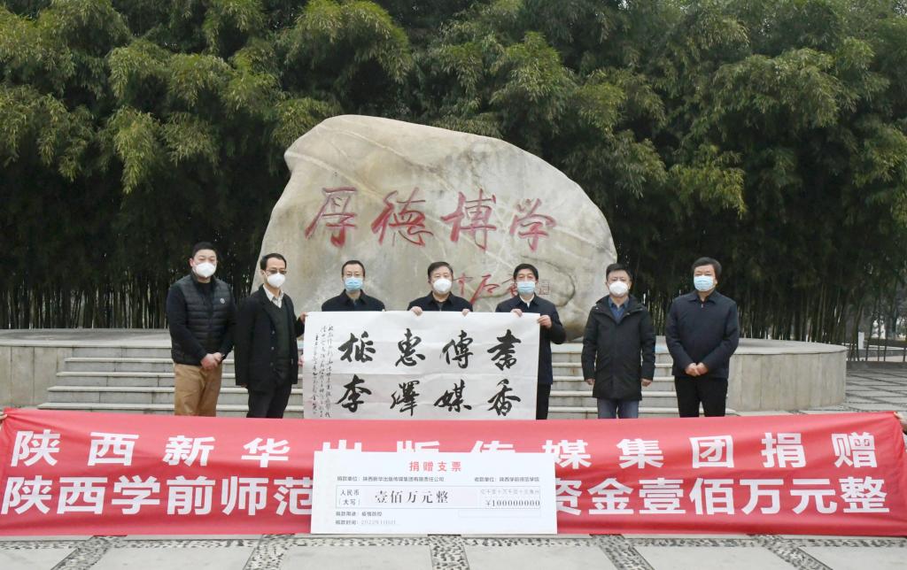 邵必林讲到,书香传媒,惠泽桃李。在全省疫情防控进入攻坚阶段的紧要关头,陕西新华出版传媒集团向学校捐赠百万防疫资金和大批防疫物资,帮助守护师生的平安健康,充分体现了大型国企勇担社会责任的家国情怀,是情满教育事业、心系师生健康的真实写照,是对学校广大师生的潺潺暖流、拳拳爱心。学校一定以百倍努力,守一方平安,护师生健康,凝心聚力打赢疫情防控阻击战歼灭战,不负陕西新华出版传媒集团的深情厚谊。