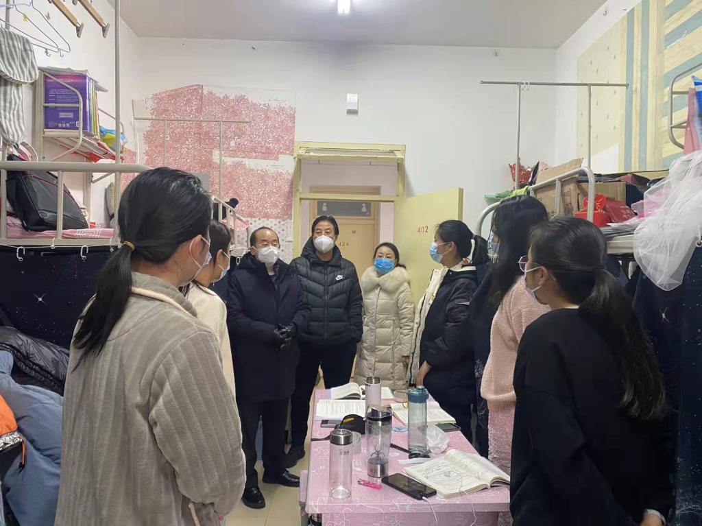 文明副校长表示,学校始终把师生生命安全和身体健康放在第一位,积极应对疫情,及时调整课程,紧跟政策要求不断优化管理服务,第一时间回应学生诉求、及时帮助大家解决学习和生活中遇到的困难。希望同学们以防疫大局为重、以生命健康为重,严格遵守疫情防控期间校园管理要求、做好防护措施,保持室内卫生整洁,努力做到防疫、学习、生活井井有条,以良好的精神面貌共度疫期难关。