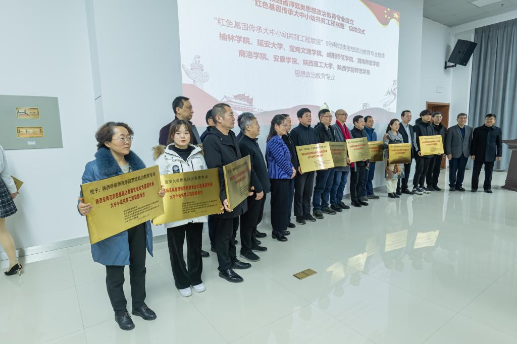 在研讨会上,与会领导为“陕西师范类思想政治教育专业建设红色基因传承大中小幼共育工程联盟”单位、第二批红色基因传承大中小幼共育工程单位举行了授牌。