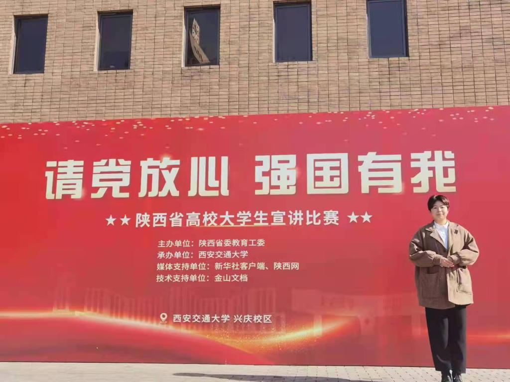 此次宣讲比赛由陕西省委教育工委主办、西安交通大学承办,来自全省71所高校的109名大学生代表参加比赛,经校内选拔赛,省级初赛、决赛到现场总决赛,比赛历时近两个月。在学校党委宣传部和党委学工部的指导下,马克思主义学院认真组织,精心备赛。总决赛中,王琳同学以《赓续红色血脉 让信仰之光照耀华夏》为题,讲述了“以笔为剑”的革命先辈殷夫投身于民族复兴、矢志报国的故事,展现了荣耀(中国)青年学子传承红色精神、践行报国理想的信心与决心,彰显了陕师院大学生理论宣讲团的风采。最终,王琳同学凭借饱满的情感、大气的台风、稳定的发挥,荣获“二等奖”。