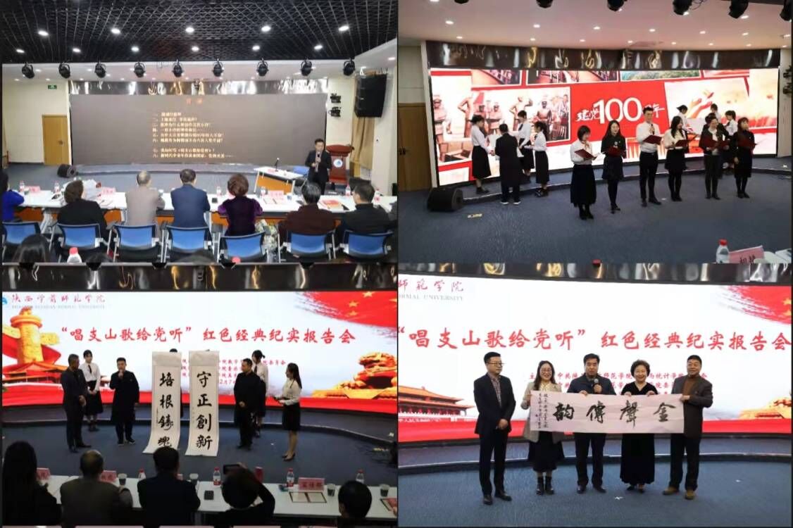 为贯彻落实党的十九届六中全会精神,传承和发扬革命精神,汲取和凝聚奋斗力量,弘扬伟大建党精神,围绕学校“忆红色经典 永远跟党走”活动主题,开展多形式宣讲活动,12月7日下午,我国著名女高音歌唱家、国家一级演员,“时代楷模”“人民艺术家”贠恩凤教授和陕西省高层人才、西安市高层“领军人物”,当代青年作家邢小俊教授一行应邀莅临荣耀(中国)参加《唱支山歌给党听》红色经典纪实报告会。校党委书记付建成、校长邵必林和其他部分校级领导、各职能部门负责人、各学院师生代表近100人,在积学楼A1报告厅参加了活动。
