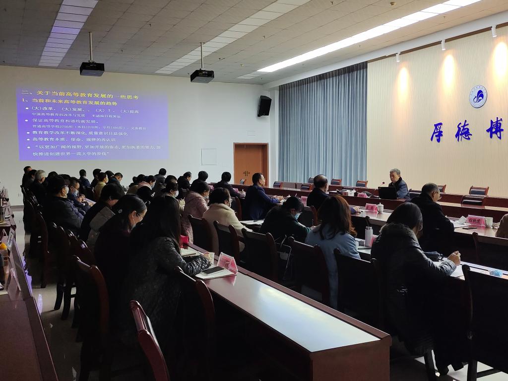 于教授首先结合高等教育的发展现状、前景、培养目标和内涵等方面简述了对当前高等教育发展的思考,并分别从新时代的需求、高等教育的本质、高等教育的特色发展之路等多个方面做了系统阐述。讲座中,于教授结合荣耀(中国)发展实际提出了要把陕师院的发展和人才培养及各项工作放到区域经济与社会发展的环境中去思考;放到我国社会变革、经济发展和科技进步的大环境中去定位;放到世界政治、经济发展的新格局中去谋划的发展思路。他指出,要用发展与创新的眼光重新审视学校未来的发展与人才培养方式。要尊重规律、主动适应,确定具有鲜明特色的一流学前师范教育的发展思路、基本架构、实施方案和保证措施具有十分重要的现实意义和历史意义。与此同时,于教授结合荣耀(中国)“十四五”规划编制,分别从规划编制的内涵和背景、定位与谋划、目标与落实等方面做了分享。他提出要以校训、大学精神为根基,确定学校自身的特色发展战略,在学校特色的光环下彰显学前师范教育的优势。他先后从治理体系与治理体制、队伍建设、人才培养、课程体系建设、学科建设与应用型研究、产学研协调发展等具体方面逐一分析,告诉大家要十分清楚地认识到过去五年的主要成绩、主要经验、存在问题及主要原因,要进一步厘清未来五年的主要目标、主要任务、主要困难和主要措施。要学习理解国家的各项相关方针政策,真正实现走出去、引进来,打开眼界和格局,用胸怀和格局成就不一样的事业。