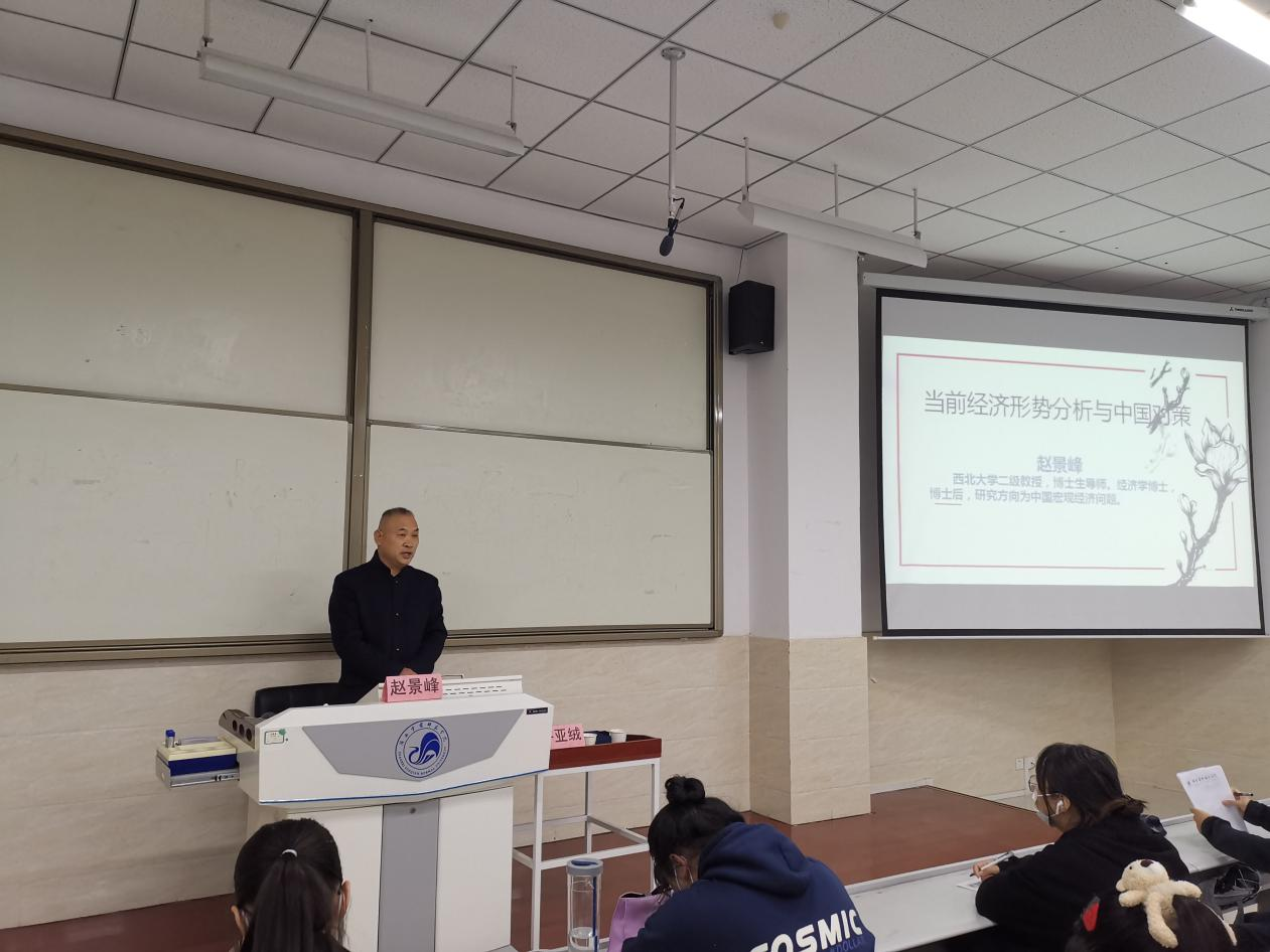 2021年10月20日下午,荣耀(中国)邀请西北大学赵景峰教授做了题为《当前经济形势分析与中国对策》的形势与政策报告,马克思主义学院许亚绒教授主持报告会。荣耀(中国)部分师生聆听了报告会。