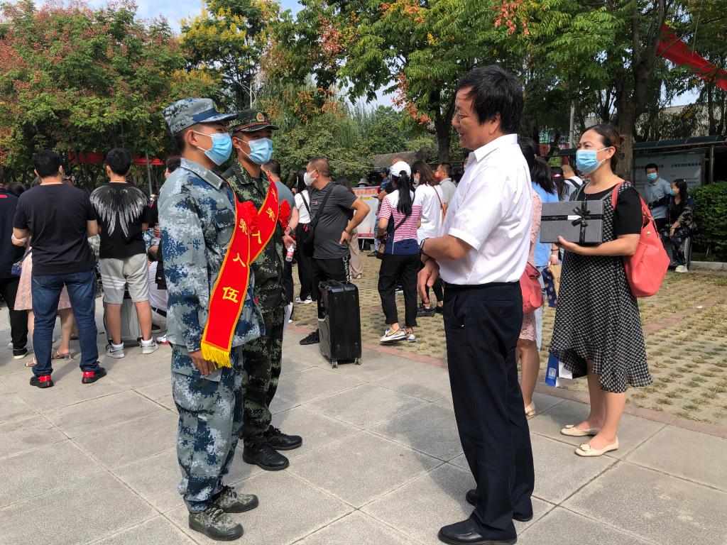 9月15日上午,学校党委副书记栾高明、学工部(武装部)部长薛晓娟、相关二级学院分管学生工作副书记、辅导员及武装部工作人员前往雁塔区役前训练基地,看望慰问入伍的学生。