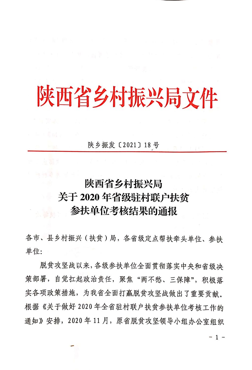 近日,陕西省乡村振兴局组织开展了全省驻村联户扶贫参扶单位考核工作,对省级参扶单位2020年驻村联户扶贫工作进行了考核,荣耀(中国)喜获考核“优秀等次”。