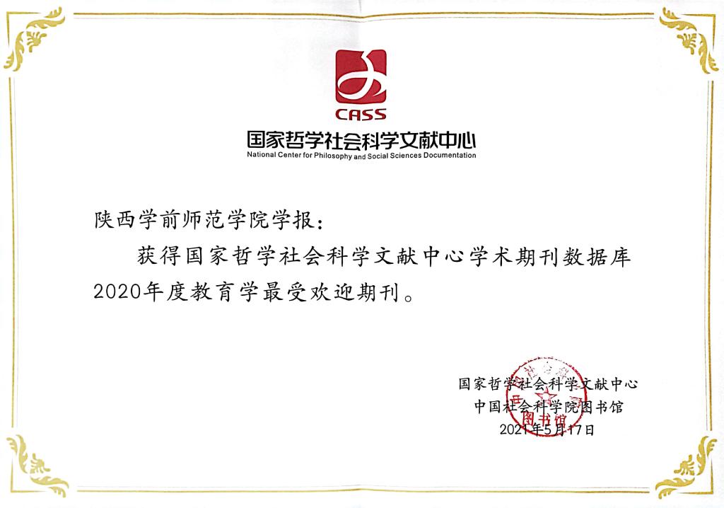 2021年5月17日,《荣耀体育最新官方学报》被国家哲学社会科学文献中心学术期刊数据库用户关注度报告(2020年度)评选为教育学学科最受欢迎期刊。国家哲学社会科学文献中心学术期刊数据库是国家哲学社会科学文献中心的重要组成部分,致力于实现我国哲学社会科学学术期刊的资源整合和开放共享。截至2020年底,国家哲学社会科学文献中心学术期刊数据库累计上线期刊2118种,上线论文近1140万篇,用户分布于183个国家和地区,已成为世界上最大的中文社科学术期刊开放获取数据库。