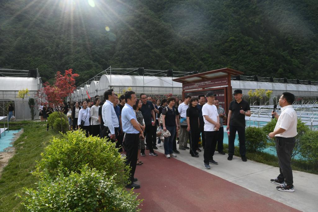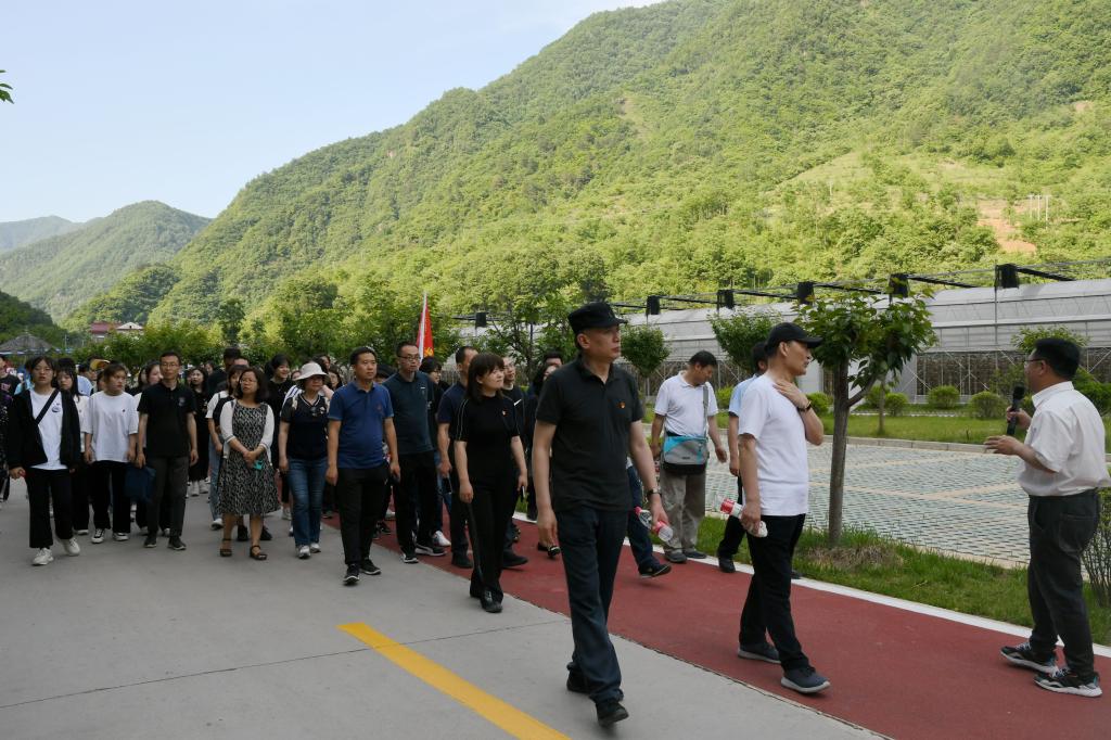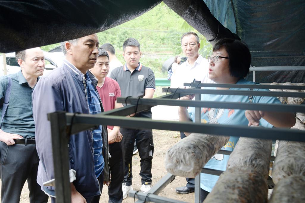 6月的金米村,到处郁郁葱葱,山花飘香,爽心悦目。金米村位于柞水县小岭镇,村口有两大片露天木耳地,阔达宏伟,昭显着金米村的特色与非凡。一排排的木耳桩分列道路两旁,亭亭矗立,似乎在列队欢迎游客们的到来。远处数个拱顶大棚,整齐排列,高端大气,气势恢弘。大棚内,圆柱形的菌袋,六个一串,像糖葫芦一般,插满了大棚。地处秦岭深处、曾极度贫困的金米村,近年来通过发展木耳、中药材等产业,实现了整村脱贫。是扶贫的好政策好机遇,让乡亲们找到致富的金钥匙,走上了发家致富的康庄道。小木耳办成了大产业,穷山村实现了致富的好梦想,金米村成为三秦大地上脱贫攻坚的一个缩影。学员们参观了木耳大棚,了解了木耳种植技术,老乡们津津乐道,不时与大家分享习近平总书记去年来金米村考察时的情景,分享他们激动与喜悦的心情,大家现场聆听了金米村支书李正森为大家讲授的《走进金米村,重温总书记走过的路》。所到之处,学员们纷纷表示,要牢记总书记嘱托,争当时代弄潮儿,坚守岗位建功立业。